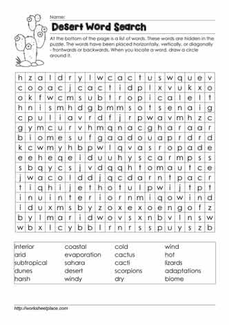 Desert Biome Word Search Puzzle Worksheet Activity By Puzzles To Print